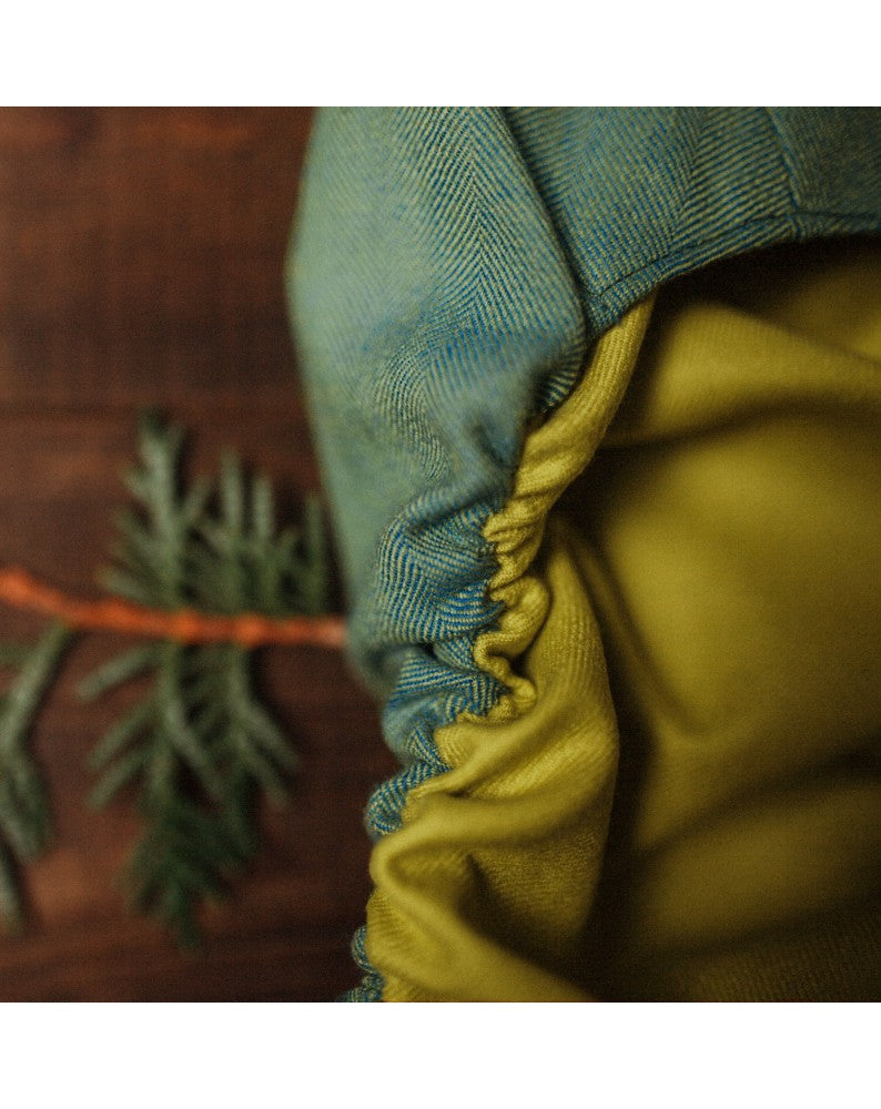 Puppi covers are made of two layers of extremely soft and thin merino wool flannel. Colorful snaps and decorative stitching make this a conversation piece. The leg elastics are soft yet very stretchy, which allows for a trim fit on virtually every child. Once lanolised, these covers hold moisture very effectively. Wool is an extremely versatile fabric for cloth nappies-- it is breathable, temperature regulating (perfect for both cold and hot days), soft, and naturally antibacterial. Lanolin breaks down urine into salts and water, so it does not need to be washed as often as PUL wraps. Simply hang to dry between uses. However, a special washing and re-lanolising procedure is necessary on wash day.