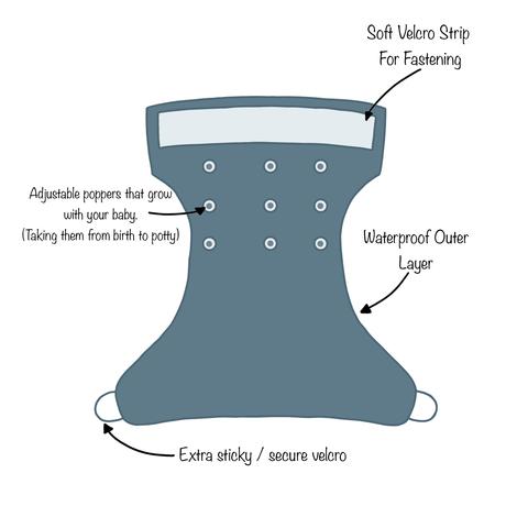* The pocket is wide and deep, you can customise this nappy to suit your own requirements