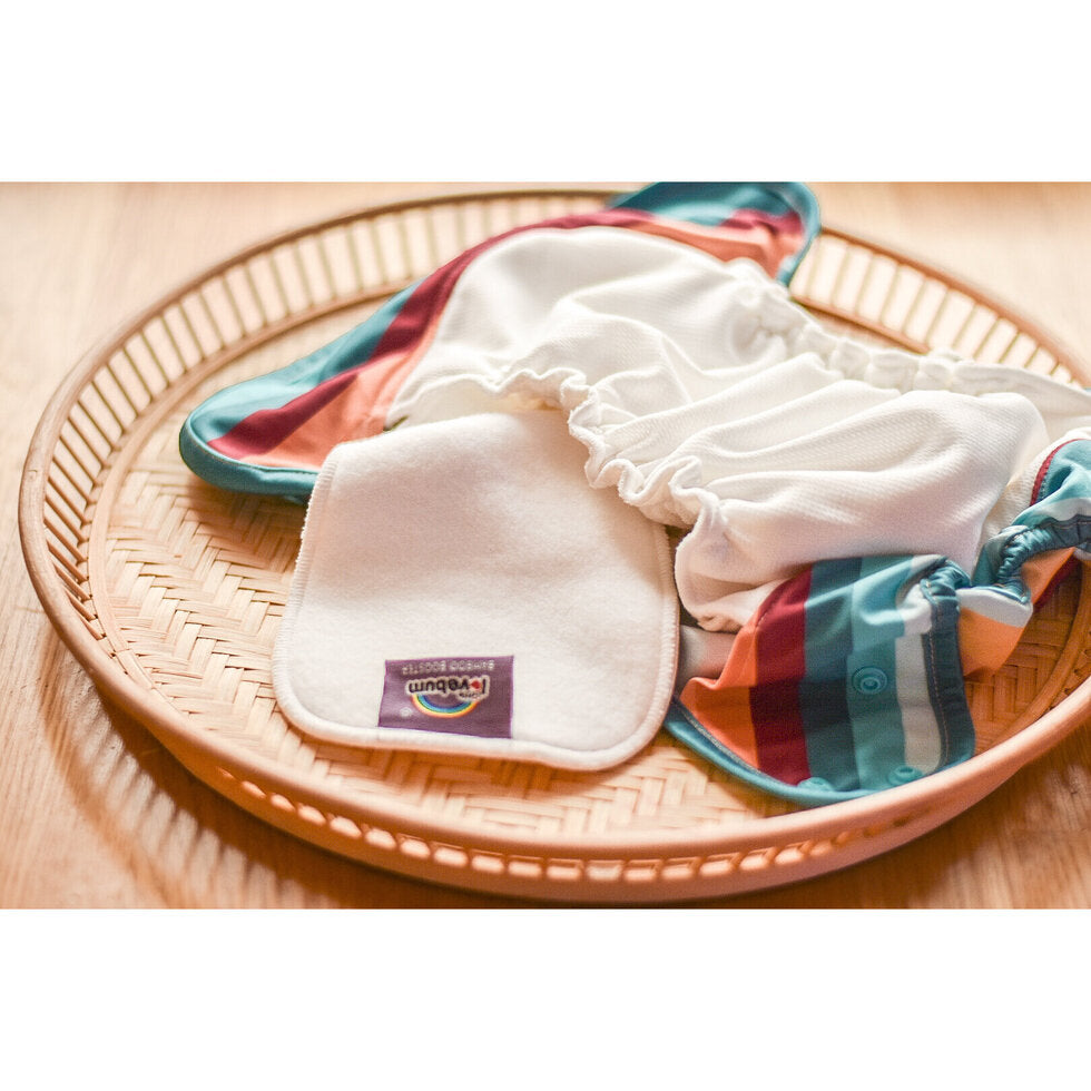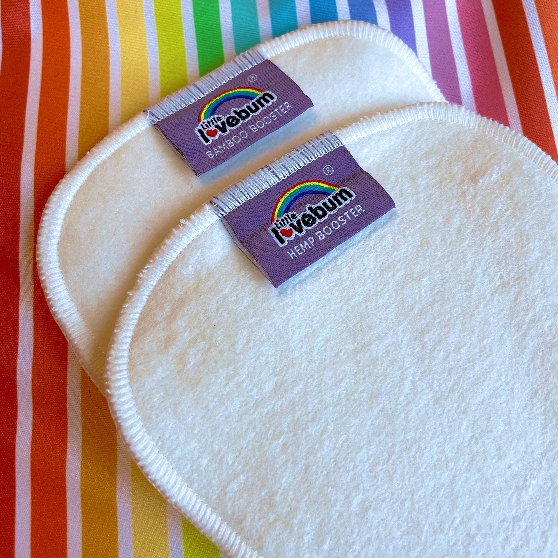 Boosters are used in all-in-one, all-in-two, flat, fitted and pocket nappies to add extra absorbency. They are the key to using cloth nappies successfully without any leaks.