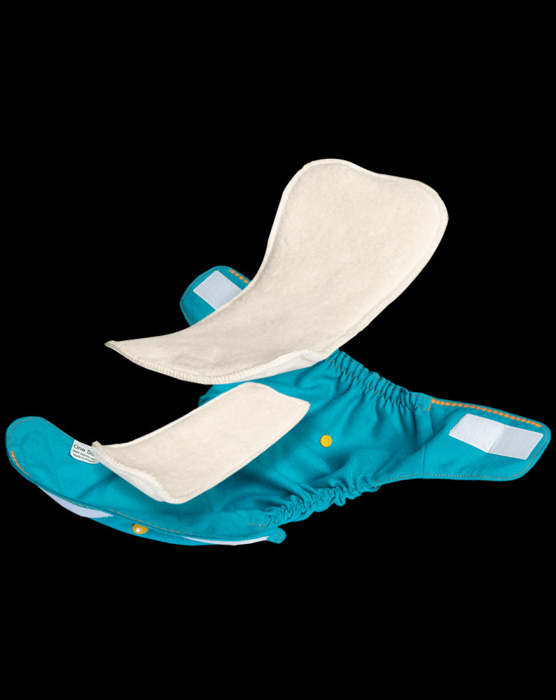 The SIO (Snap in One) aka AI2 cover has two snaps which allows you to snap in the insert. These shells can be used with Puppi snap in inserts, flat or fitted nappies.