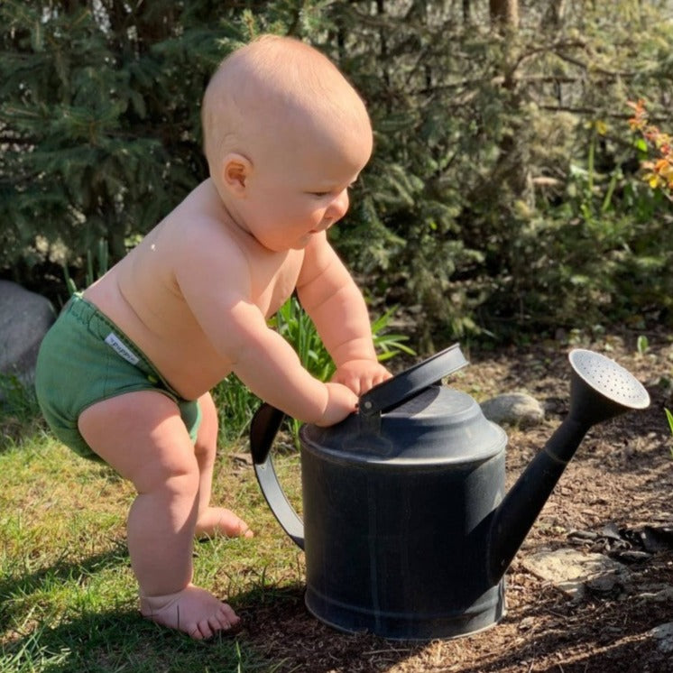 Puppi AI2 nappy shells are made of two layers of extremely soft and thin merino wool flannel. Colorful snaps and decorative stitching make it a conversation piece. The leg elastics are soft yet very stretchy, which allows for a trim fit on virtually every child. Once lanolised, these covers hold moisture very effectively. Wool is an extremely versatile fabric for cloth diapering-- it is breathable, temperature regulating (perfect for both cold and hot days), soft, and naturally antibacterial. Lanolin breaks down urine into salts and water, so it does not need to be washed as often as PUL diapers. Simply hang to dry between uses. However, a special washing and re-lanolising procedure is necessary on wash day.