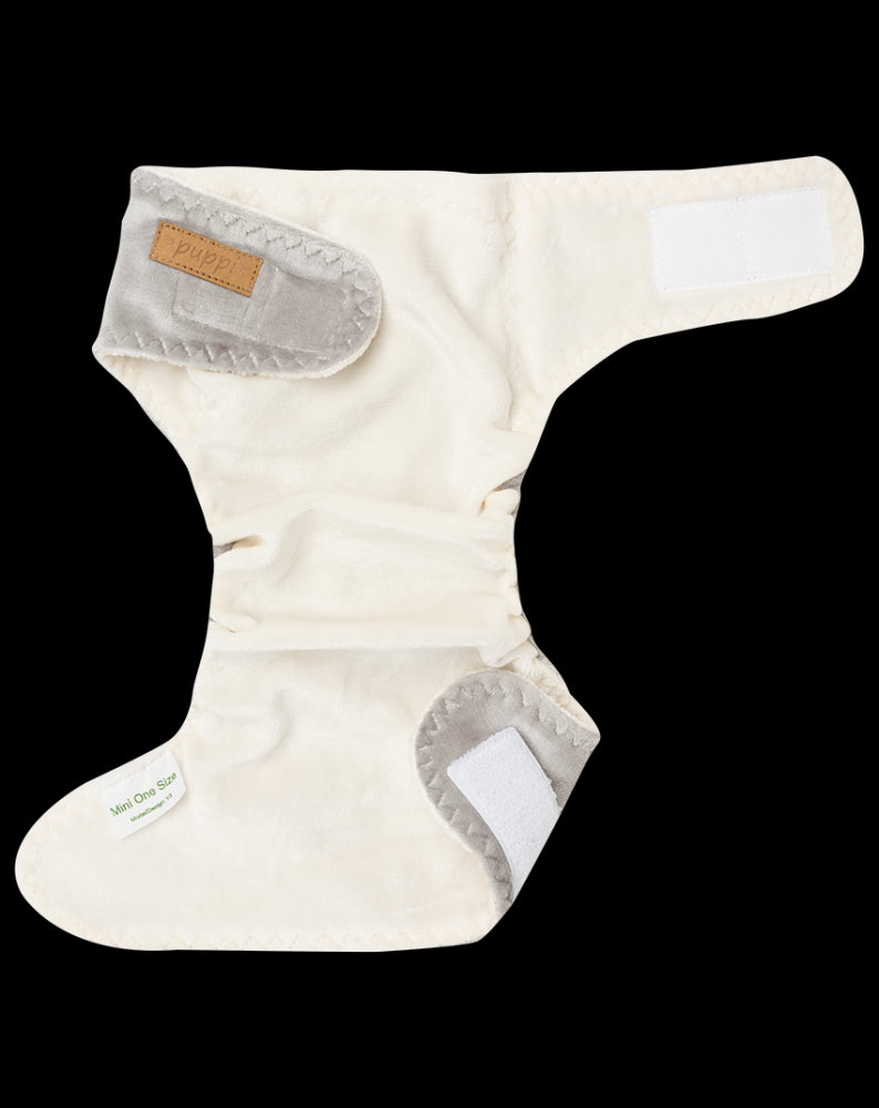 This nappy requires a water-proof cover. It will work great together with Puppi Mini Onesize (MOS) and Onesize wool covers.