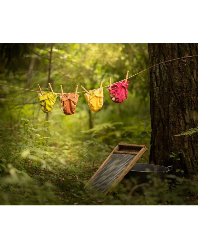 This nappy requires a water-proof cover. It will work great together with Puppi newborn wool covers. Wool cover, every so often lanolised, are a very efficient solution to prevent leaks. Fitted nappies are also a great set with Disana wool shorties.