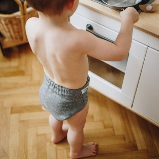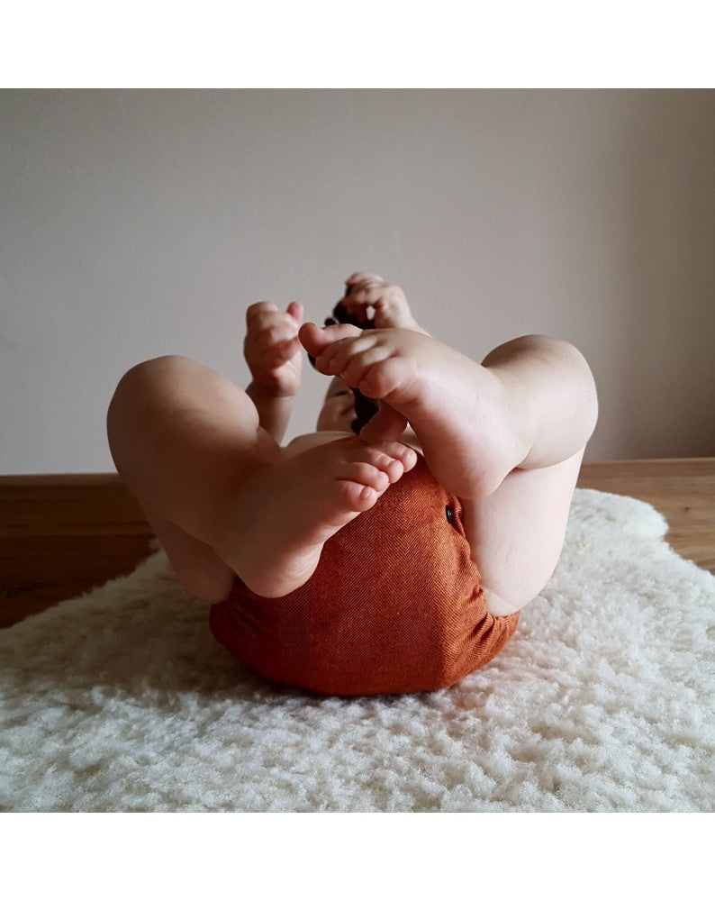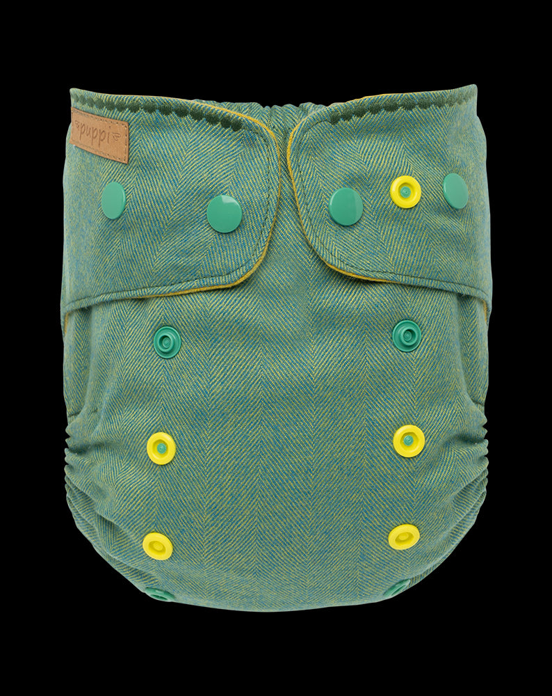 Puppi one-size covers are made of two layers of extremely soft and thin wool. Colorful snaps and decorative stitching make this nappy a conversation piece. The leg elastics are soft yet very stretchy, which allows for a trim fit on virtually every child. Once lanolised, these covers hold moisture very effectively. Wool is an extremely versatile fabric for cloth diapering-- it is breathable, temperature regulating (perfect for both cold and hot days), soft, and naturally antibacterial. Lanolin breaks down urine into salts and water, so it does not need to be washed as often as PUL diapers. Simply hang to dry between uses. However, a special washing and re-lanolising procedure is necessary on wash day.