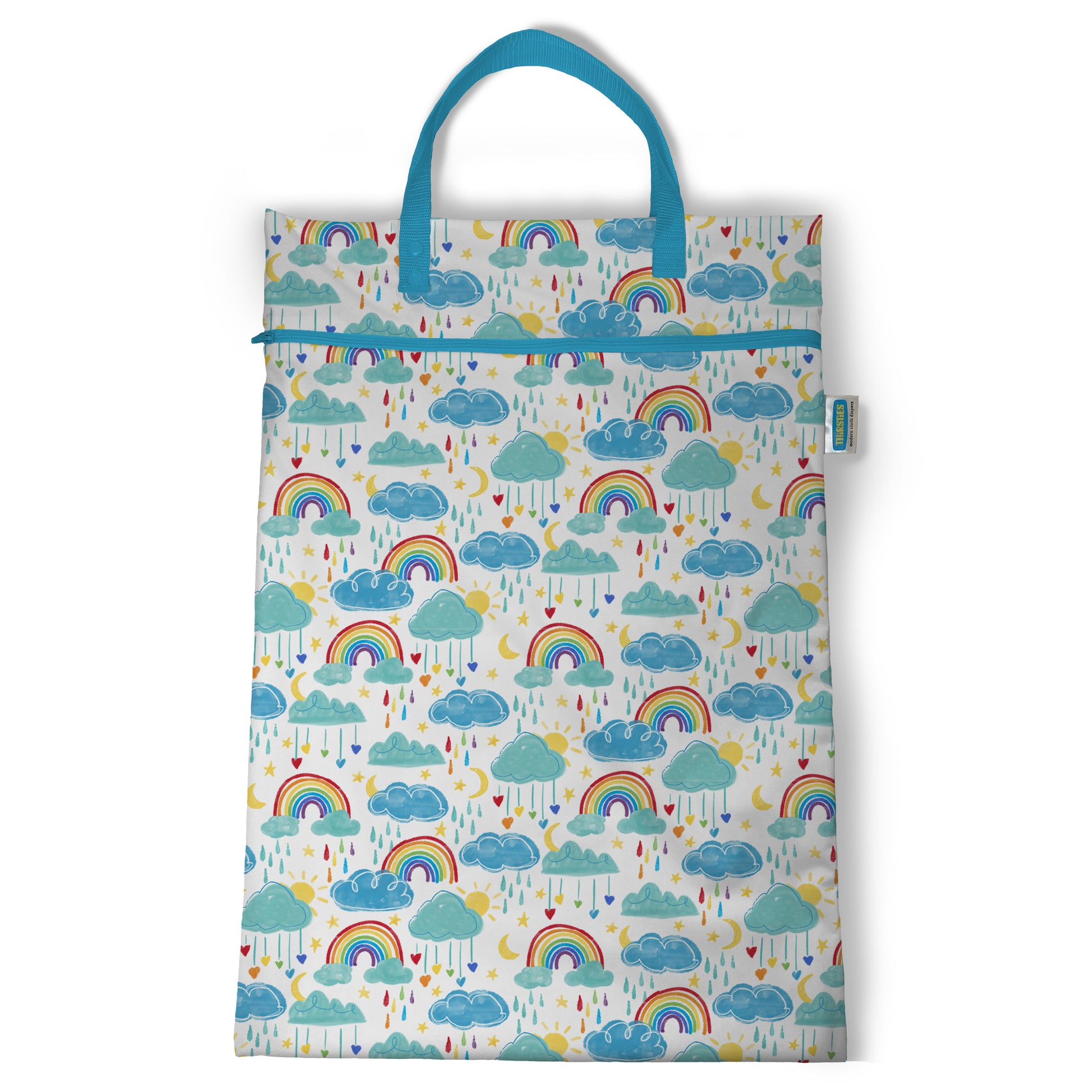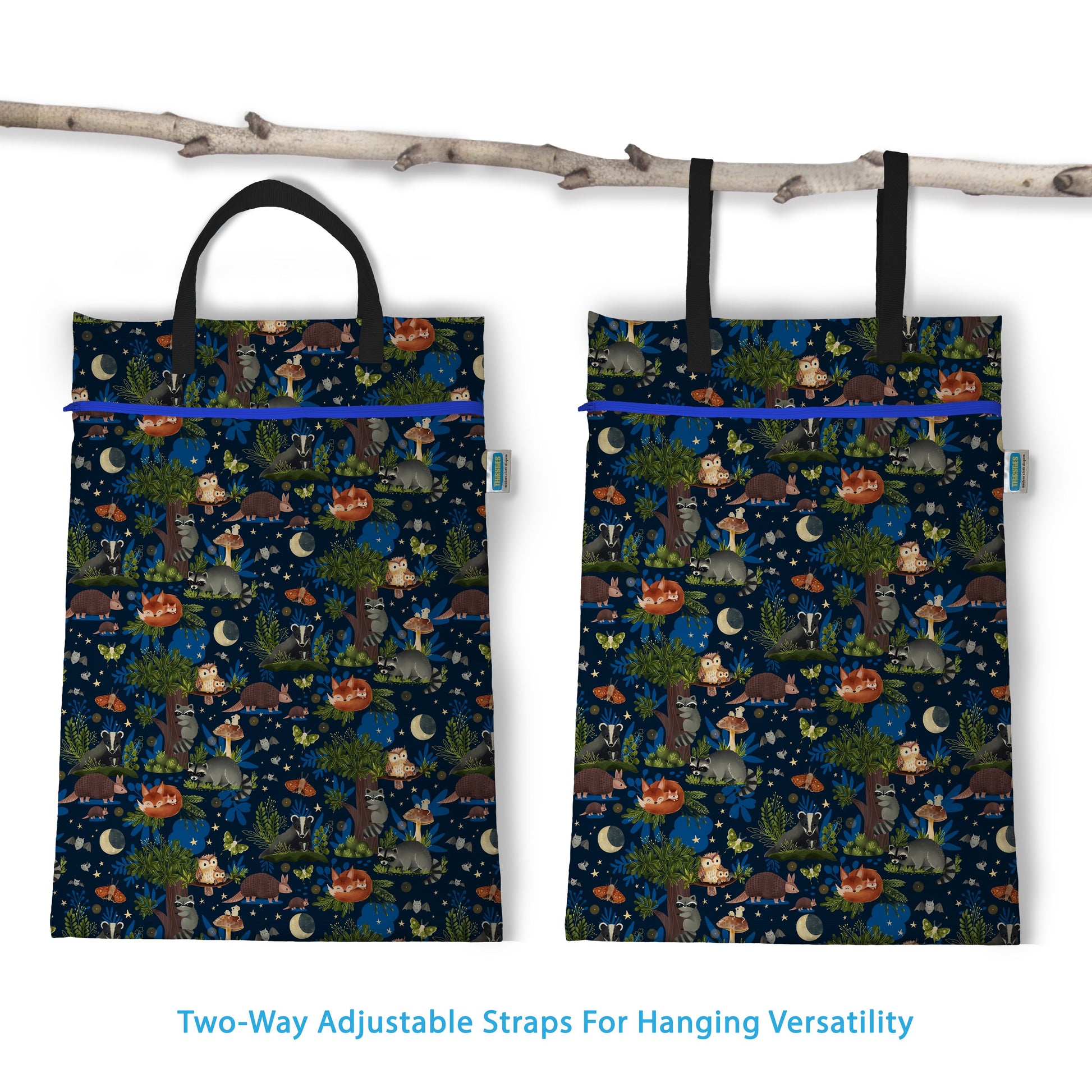 Waterproof interior prevents leaking and wicking and keeps smells contained while storing dirty nappies or laundry. Sturdy straps can be snapped in two directions to be used over a bar or rail or around a doorknob.