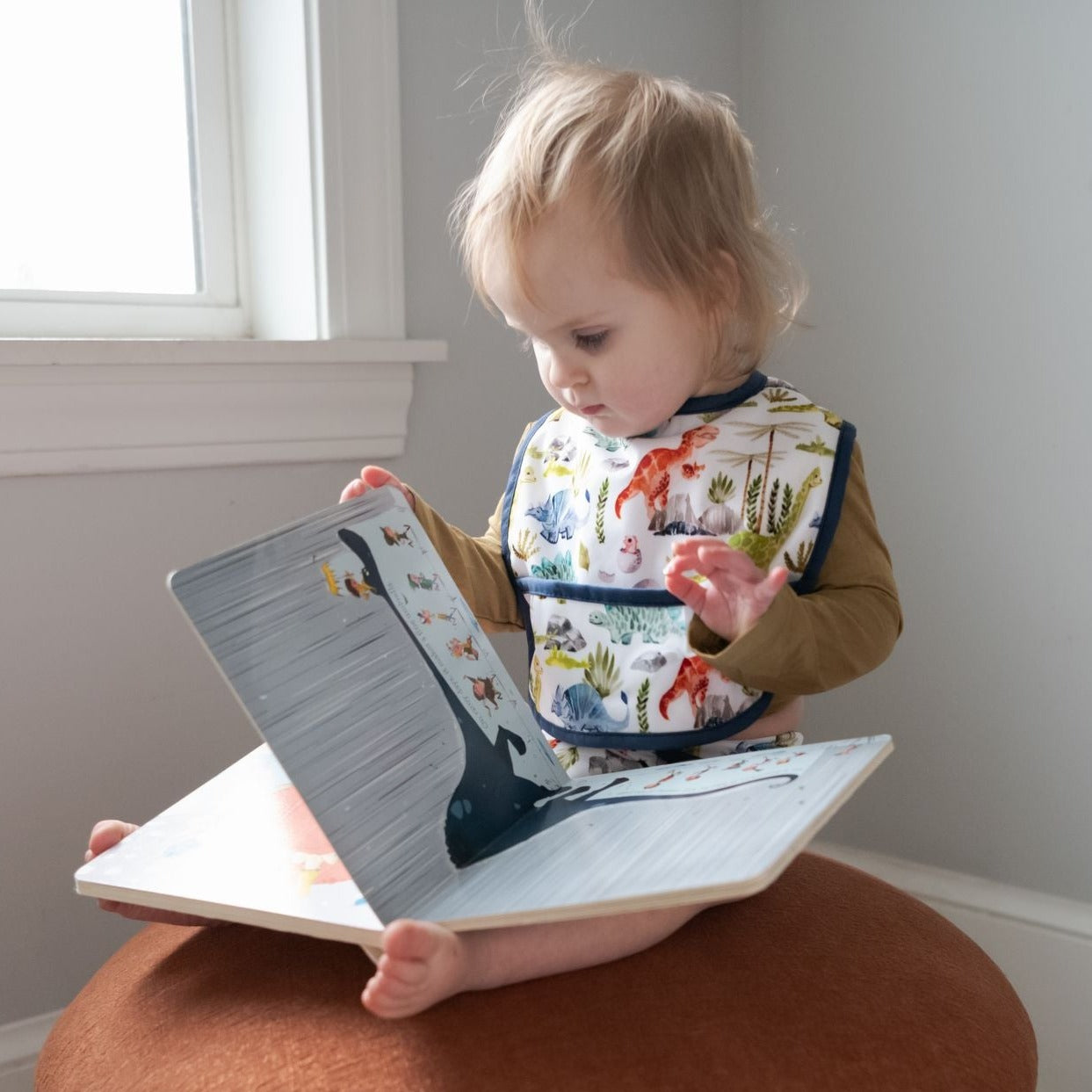 Clean-up is simple with this easy-to-clean, waterproof bib with two adjustable snap settings and a handy crumb catcher.