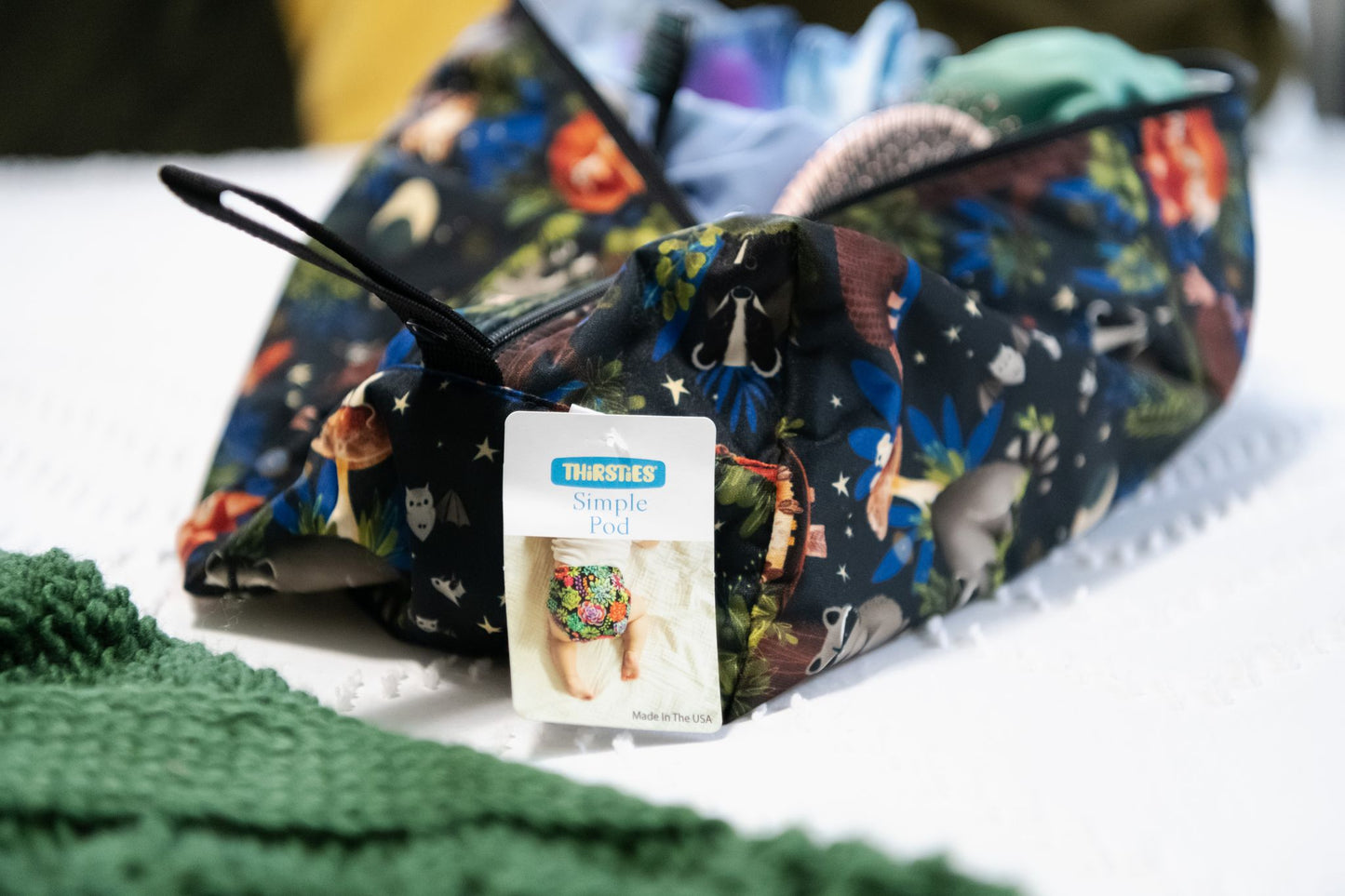 Thirsties Simple Pod is perfect for all your organisational, storage and travel needs: double-lined with waterproof PUL to help keep toiletries from leaking when on the go and constructed with one horizontal and one loop strap to easily hang or carry. Organisation has never been easier... or cuter!